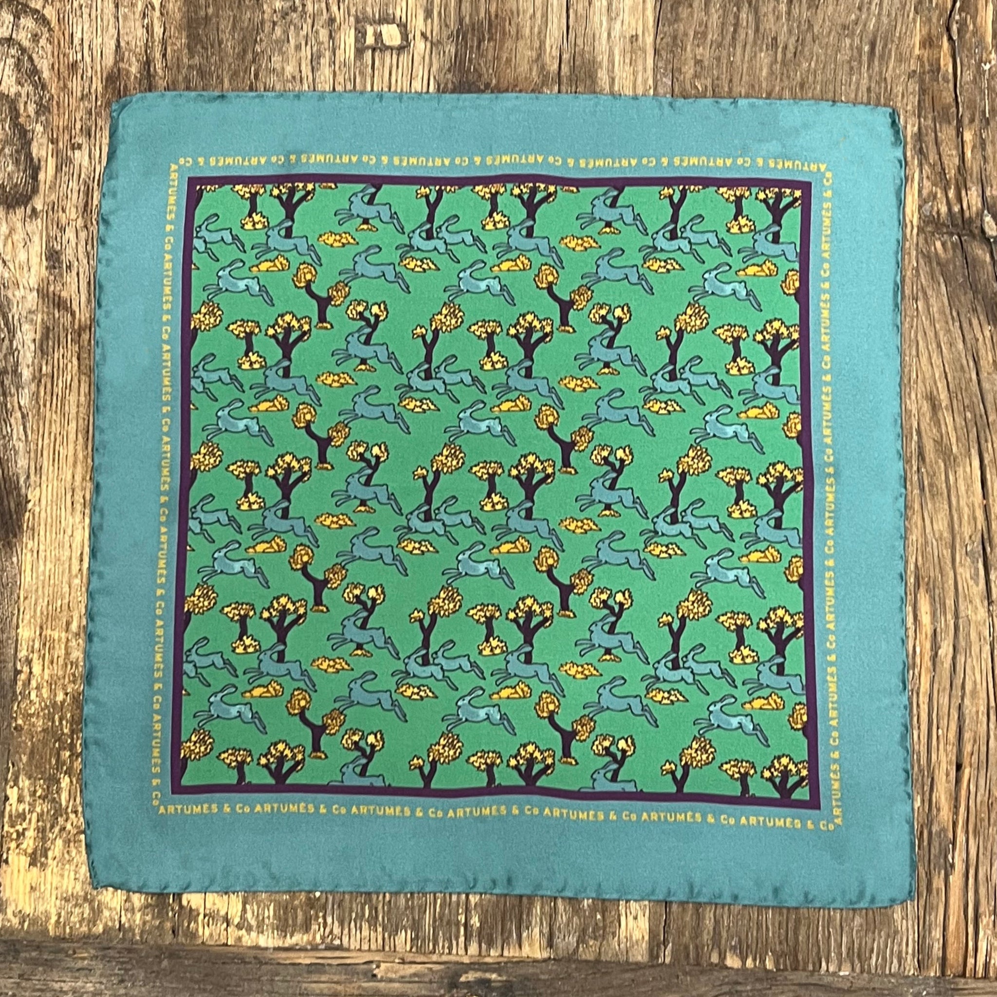Pochette Soidatour madder imprimé Le Perche -Bleu acier vert anglais