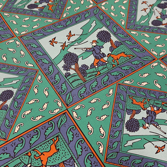 Cabas Eden cuir et toile enduite Bestiaire Mirage Lièvres pétrole - forêt noire