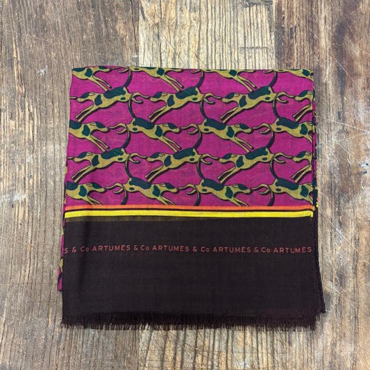Echarpe Tourdesoi Classic Bestiaire Mirage Chiens Anis - magenta