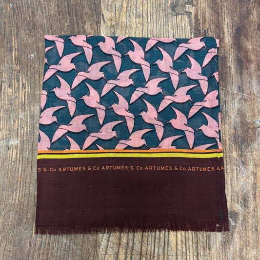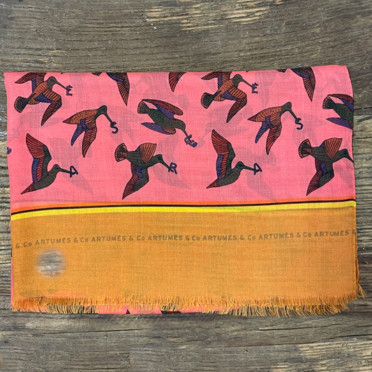 Echarpe Tourdesoi Classic Bestiaire Mirage Bécasses cuivre rouge - clémentine