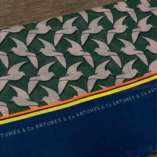 Echarpe Tourdesoi Classic Bestiaire Mirage Bécasses cardamome - basilic