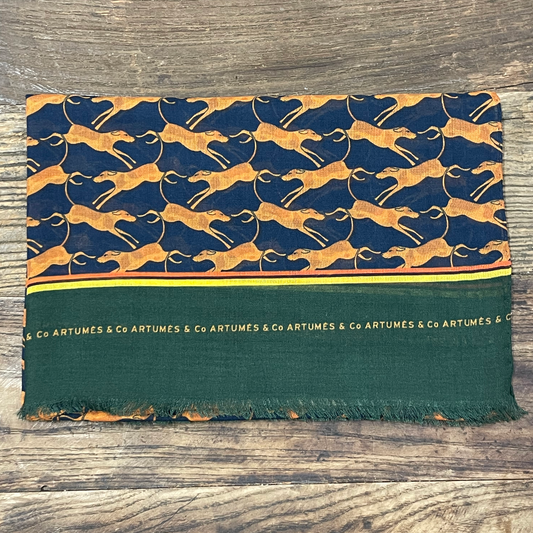 Echarpe Tourdesoi Classic Bestiaire Mirage Chiens mandarine - marine