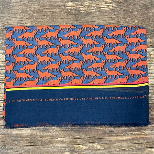 Echarpe Tourdesoi Classic Bestiaire Mirage Renards terre de sienne - denim