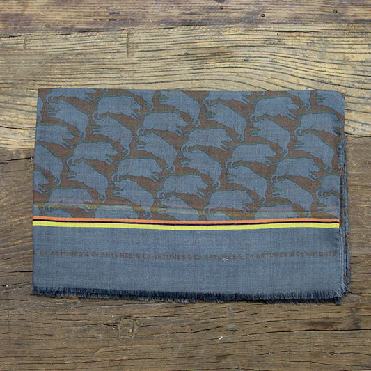 Echarpe Tourdesoi Classic Bestiaire Mirage Sangliers Noyer - Gris