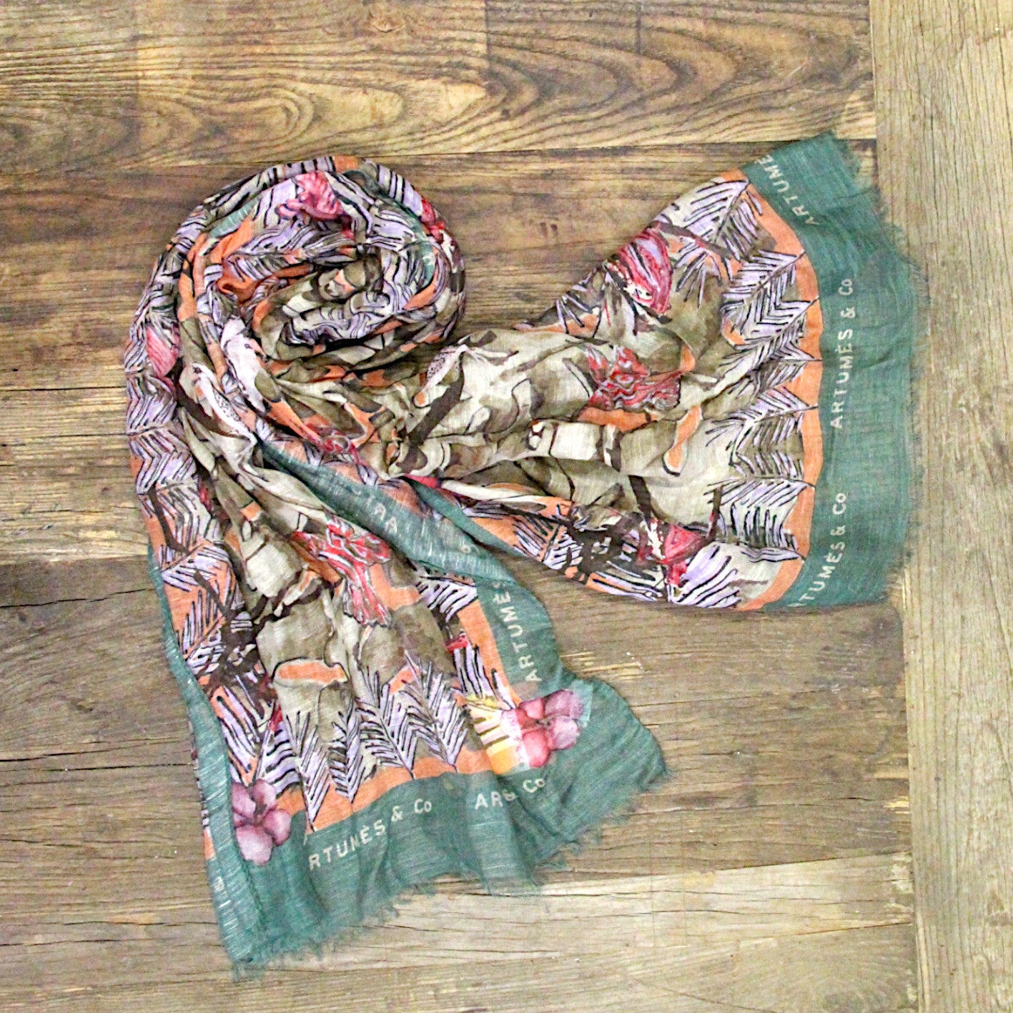 Echarpe Tourdesoi Safari Birdy Party saumon eucalyptus